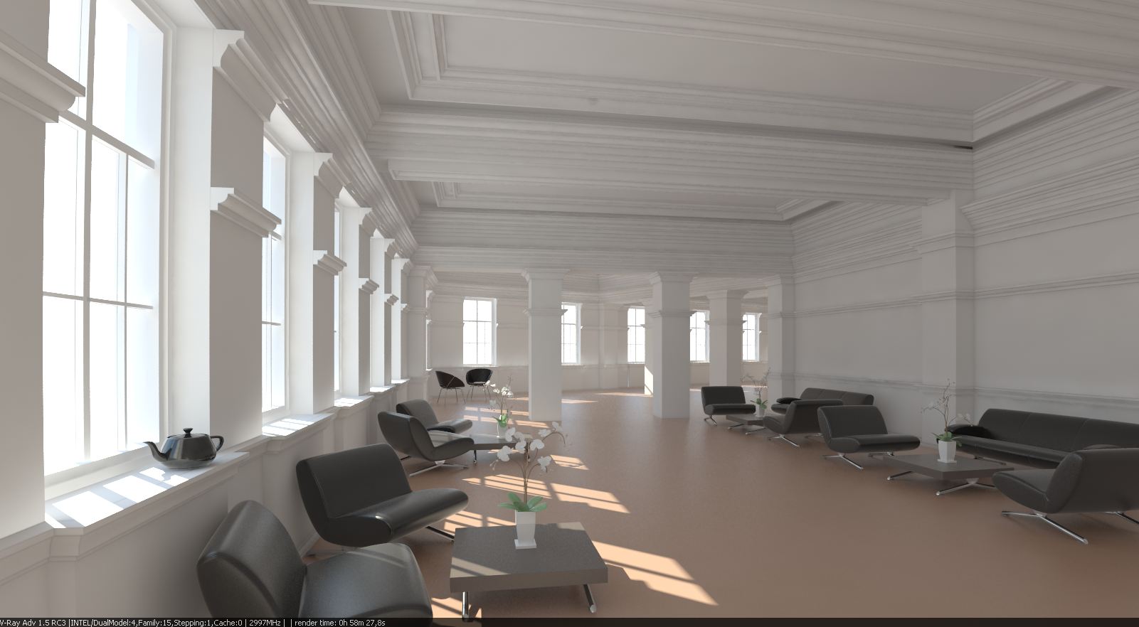 Geccoka #39881 Na, lefutattam. A colormapping plugint sajna nem tettem fel, ezert kicsit kimosott lett, az asztal es a padlo texturaja alig latszik. A beallitasokon nem valtoztattam, csak megnyomtam a render gombot.