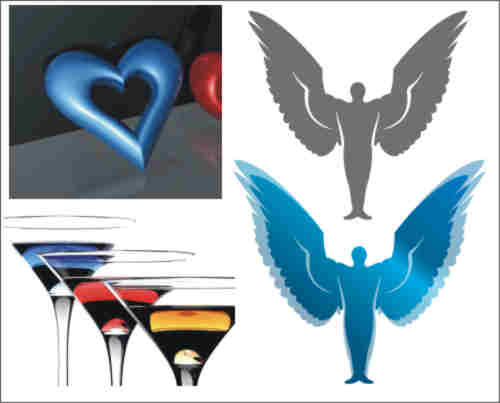 A bal oldalon felül egy 3d-s szív alak, aminek megjelenése (alakja) nagyon hasonlít arra, ahogy elképzeltem a logót, csak az anyaga sokkal fémesebb lenne, csillogóbb, már-már átlátszó, ahogyan a lenti poharakban az italok.