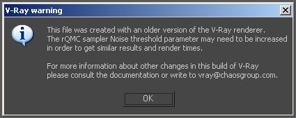 This is now corrected and increasing the Max subdivs for the Adaptive rQMC image sampler keeps the same noise level without modifications to the Noise threshold. This should be kept in mind when working with older scenes where the Noise threshold was reduced - they might render slower, although the noise level will be much less. To reduce the render times again, you should increase the Noise threshold or override it by unchecking the Use rQMC sampler thresh. option in the Adaptive rQMC image sampler rollout.