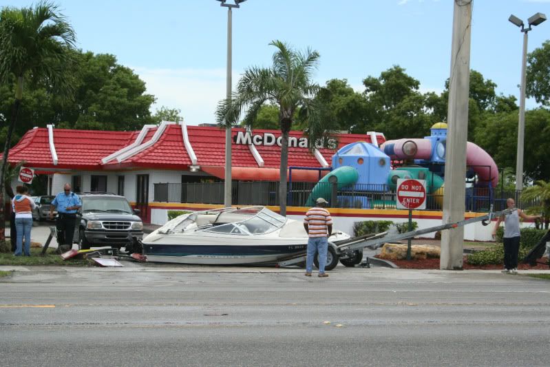 Egyik pillanatban azt szurom ki hogy valami szokatlan kozeledik felem. azaz ket dolog. Az egyik egy sima ford suv amit a kepen is latni majd viszont amit probalt utolerni ami szinten halal pontosan felem robogott tetlenul az egy faszom hajo volt a vontaton!!!! AZ EMBERUNK ELHAGYTA A FAXOM HAJOJAT!!! Igazsag szerint egy par masodpercig el se akartam hinni hogy mi tortenik. kb az jatszodott le bennem hogy: mit keres a hajo az uton? miert gurul felem a hajo? dejo.. oldalkocsis vontatoja van a fordnak... ja megse.. tunjunk innen! es akkor mentem volna at a kozepso kanyarodo savban de ez a fasz abban robogott felem... szal nem tudtam mast csinalni athuztam a szembe levo savokba ahol nem jott senki mivel azok mar lattad a bajt :D
