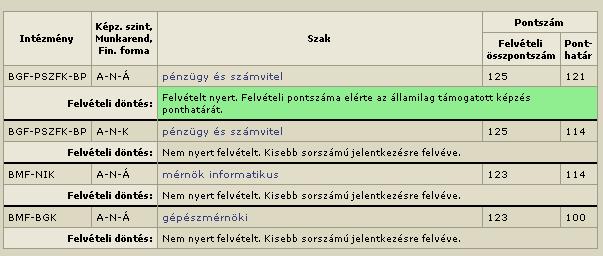 és ha a 2 évvel ezelőtti 126os ponthatár van akkor is felvesznek, a tavalyi 125össel is:) -