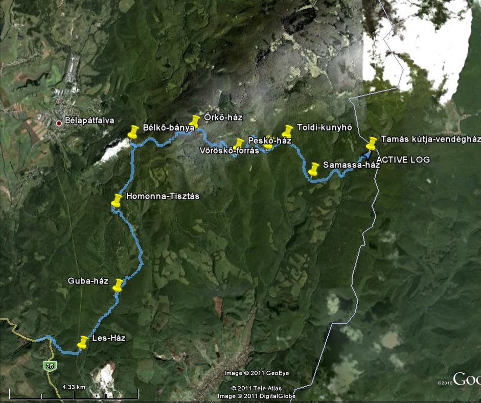 Szarvaskő - Les-ház - Guba-ház - Homonna -tisztás (itt 2. vh-s katona sírok vannak) - Bélkő (itt felmentünk a lezárt bányához) - Őrkő-ház - Peskő-ház - Vöröskő-időszakos forrás (épp csak csordogált max 10-15 centis a víz) - Toldi-kunyhó - Samassa-ház - Tamás kútja vendégház.