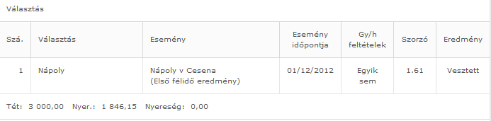 Kár, hogy csak 1k val toltam :D, dehát jó 1,5 hónapja szarom már le fogadást. Kb 4x tettem ez idő alatt abból is 2x bónuszt :D:D -