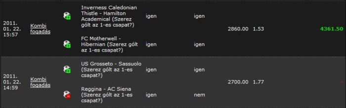 Ferrari23 #118013 Félidőben tettem, mikor is a staton azt láttam Arsenal 10/8, Wigan 1/0 :D:D Hát mondom csak összehozzák :D -