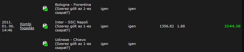 Tehát ha az inter meccs bejön, akkor a másik meccs kimenetele mindegy mivel mind3 lehetőség meg van rakva. Akkor működik ez, ha a 2 meccs szorzója 3.0 fölött van és persze tuti biztos hogy esetünkben az inter nyert.