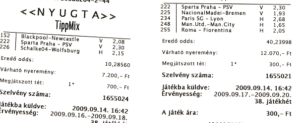 tét: 2000 ft várható nyeremény: 6085 ft -