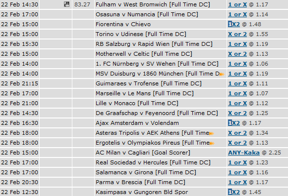 am amit én tenni fogok: Atletico , Villareal , Real MAdrid H H H. Atletico lehet X is de otthon csak nyernek már a Porto ellen , de lég hasonlo kaliberü a két csapat. -