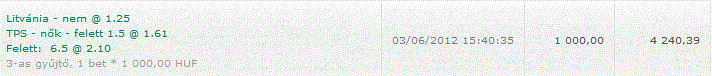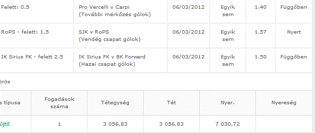 Fogadás típusa Fogadások száma Tétegység Tét Nyer. Nyereség