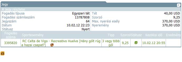 Four-Folds, 1 bet * 950,00 HUF 2.10 oddsz, :D -