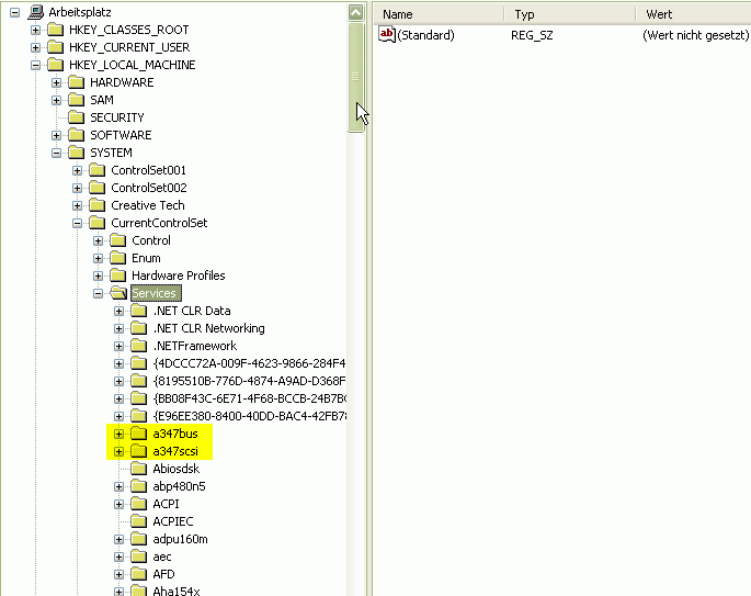 Indítsd el a Futtatásban(Start menü) a regedit -et. Keresd ki a HKey_Local_Machine\System\CurrentControlSet\Services bejegyzést és itt kereséssel keres rá az 'alcohol' szóra, és amiket lel töröld ki. És töröld ki a 'a347scsi' és 'a347bus' nevű fájloakt innét: \Windows\System32\Drivers
