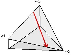a piros vektort keresem a w1,w2,w3 háromszöghöz. -
