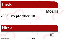 Attis55 #7171 Sziasztok! Lenne egy problémám... Ha Mozillát használok elcsúszik egy HTML-elem, IE-ben pedig tökéletes!!! Ráadásul semmi baja nem volt Mozilla alatt korábban. Updateltem az oldalt tegnap (egy teljesen másik részen) és azóta ez a kép fogad... PlsPls help!