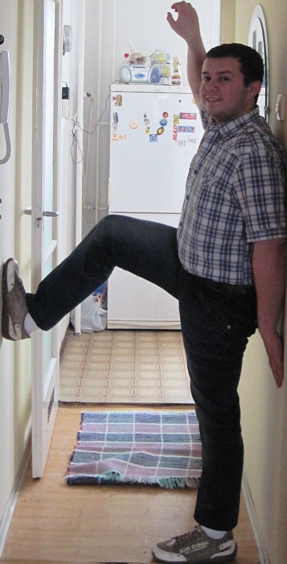 Egy ilyet is terveztem, csak azt nem tudom megcsinálni, hogy a jobb kezével fogja meg a felsõ keretet.