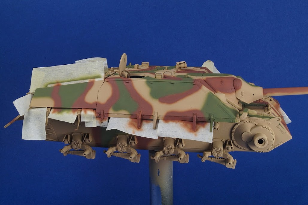 Ezen pl. készre kevert, színhelyes, korszaknak megfelelő, semmitnemkellcsinálnivelecsakfújni MIG zíneket használtam, de nem jó. A zöld túl szürke, a barna túl vörös. De mivel what if, maradhat. Most egy L/70-et fújok, azon már Tamiya színek lesznek, mert inkább kutyulom kicsit, de valóságosabb legyen.