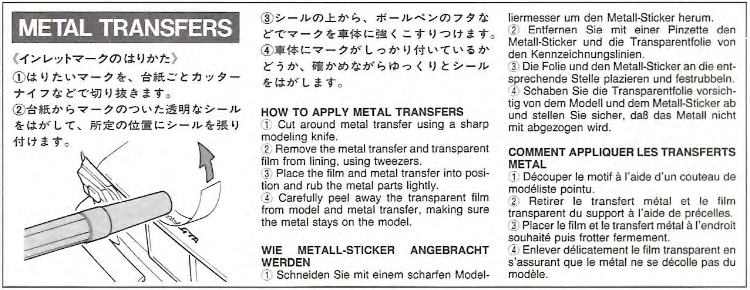 how to apply metal transfer, de lehet még variálni ha jól látom "dry, decals, stikers, model, tamiya..." és egyéb szavakkal.