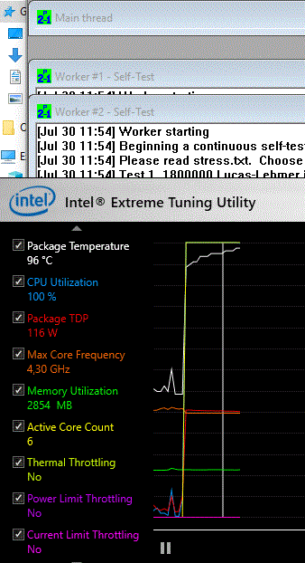 Ez a jelenlegi hőfok 2 perc (Prime 95 Small FTTs <- Ez egy irreális teszt, 2 percnél tovább kb nincs is értelme futtatni)