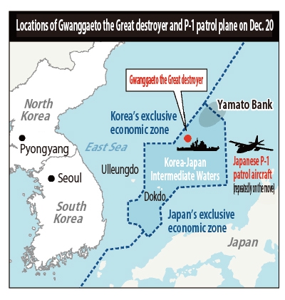 Érdekes történet, a Japán haditengerészet egy P-1 repülőgépe 2018 december 20-án nemzetközi vizeken azonosította, és repült viszonylag közel (de biztonságos távolságra) a Dél-Koreai haditengerészet Kvanggetho a Nagy elnevezésű rombolójához (DDH-971), majd a repülőgép személyzetének jelentése szerint a tűzvezető radarral befogták a repülőgépet. A repülőgép ezután a 121,5Mhz-es nemzetközi hajózási kommunikációs frekvencián többször próbálta elérni a rombolót, de az nem reagált a rádióhívásra.