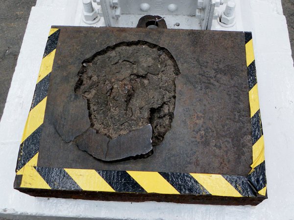 Egy HESH lövedék által eltalált páncéllemez "belső" oldala -