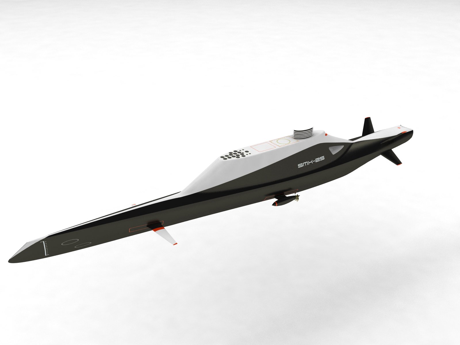 Persze mégis mi az, hogy újra? Hát az, hogy az SMX-25 fantázianevű tervük kb. ugyanazt tudja, mint az I. és II. Vh-s tengók, csak mai köntösben. A 109 méter hosszú, felszínen 2850 tonnás tengeralattjáró alig képes lemerülni, legalábbis a 100 méteres merülési mélység már az első világháborúban is előfordult, a II.Vh-ban pedig teljesen normális volt. A lemerülve 10 csomós sebessége is inkább ebben a korszakban volt nagy szám. Akkor meg mi értelme? Nos az, hogy a felszínen viszont 38 csomóra képes, és egyfelől igen lopakodó kialakítású, másfelől nagyon áramvonalas. A fő fegyverzete sem a torpedók, bár négy nehéz torpedóval rendelkezik, a fő ütőerejét 16db hajó elleni rakéták/robotrepülőgép jelenti. Ezen felül három pilóta nélküli helikoptere is van, és a 28 fős személyzet mellett 10 kommandóst tud elvinni magával. A feladata az, hogy a célzónába gyorsan eljusson (ekkor lép működésbe a három gázturbina által hajtott három vízsugár-hajtómű, és a 38 csomós sebesség), ott pedig felderítse az ellenfeleket, ha pedig kell, hát legyőzze őket. Aféle modern fregatt-tengeralattjáró.