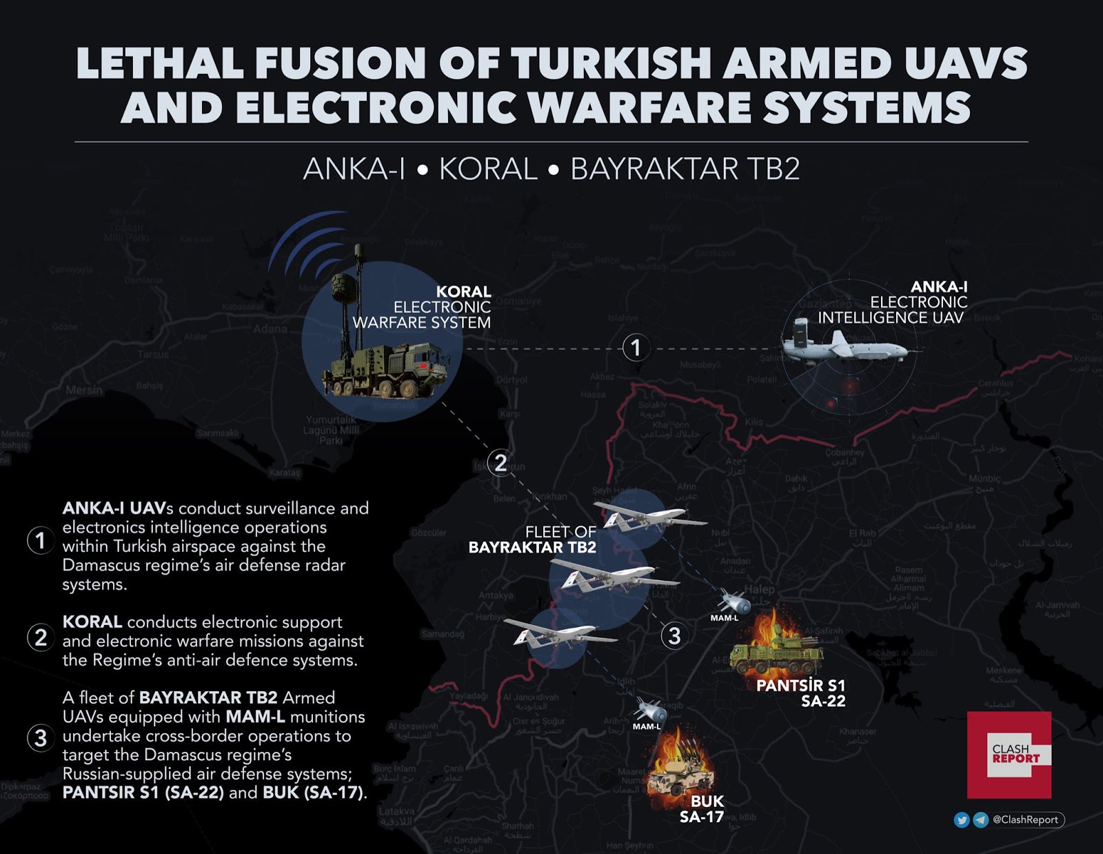 Ez korábbi történet, de attól még mintája annak, hogy néz ki egy modern SEAD: a törökök UAV-okkal és EW járművekkel derítették fel a szír légvédelem Pancír és Buk-M1 egységeit, majd UCAV-ok semlegesítették őket. A némileg meglepő, hogy itt nem az Egyesült Államokról, Izraelről vagy Oroszországról beszélünk, hanem Törökországról, tehát a középhatalmak is már itt tartanak...