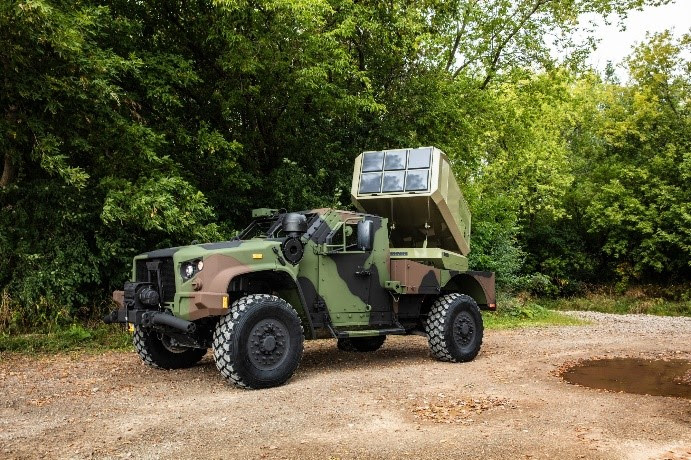 JLTV platformon 6db-os HERO-120 loiter lövedék. Azért a 40km-es max. hatótáv és max. 60 perces repülési idő elég csúnya dolog egy 3,5kg-os harci fejjel együtt.