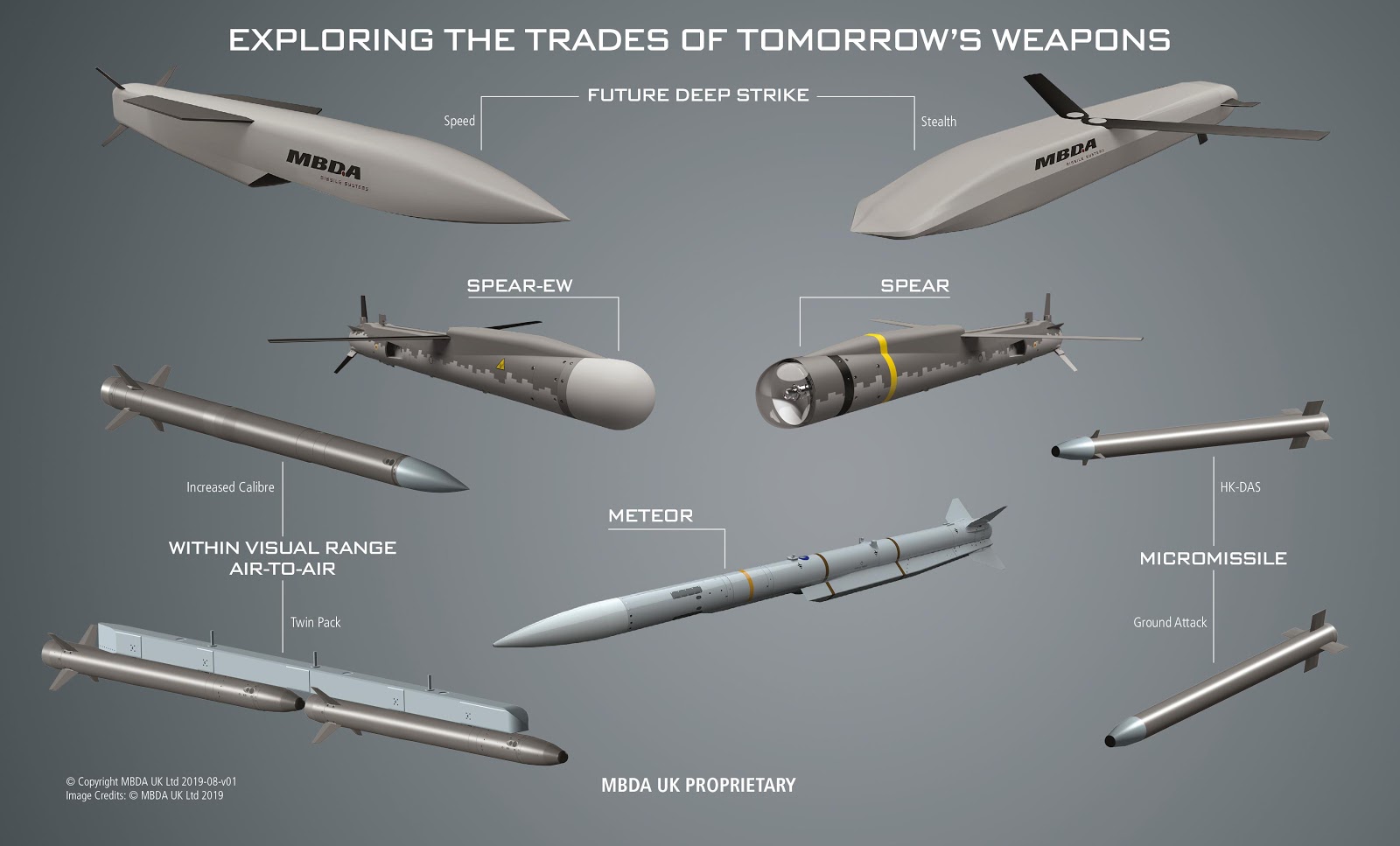 A Team Tempest ajánlása fegyverzet terén. Érdemes megfigyelni a nagyobb átmérőjű levegő-levegő rakétákat, a Spear-EW rádióelektronikai zavaró verziót, illetve a micro-rakétákat...