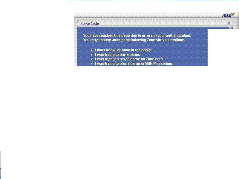 "A bejelentkezés az MSN szolgáltatásba sikertelen.Késöbb próbálja meg újból.