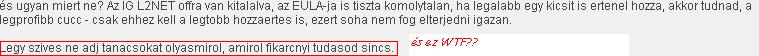A +1 majd akkor jon, ha az, aki elarulta a neved, jovahagyja nekem a folytatast, az engedelye nelkul ugyanis nem akarlak tole szarmazo infoval flamelni. -