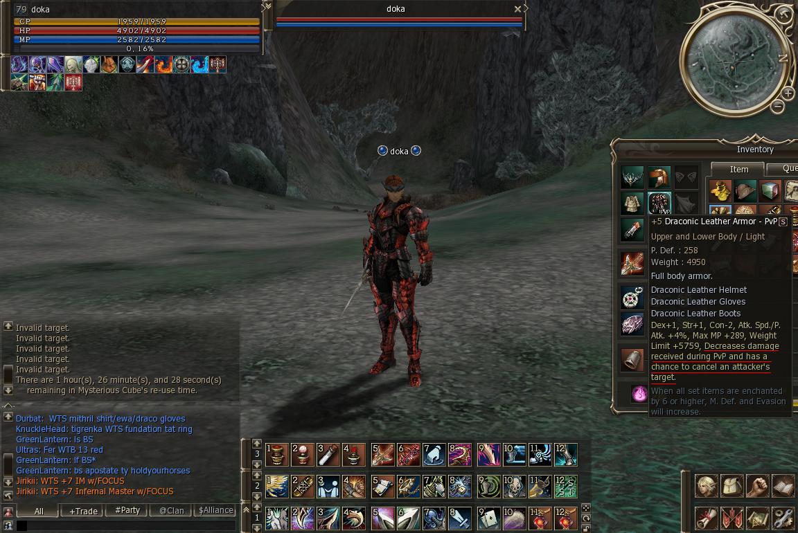 * Battle Mana Recovery Potion: Recovers MP when in use. Characters below Level 52 are not affected. Usable only during a Siege or Fortress war. - 92 PRP