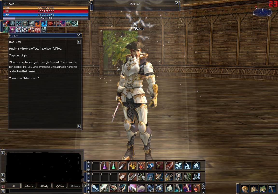 lvl72-t 8 hónap alatt értem el úgy, hogy sose botoztam, nem vettem adenát, A grade-ig sajnos túl sok buffer partym se volt, és mindig csak annyit játszottam, amennyi jól esett. Külön A-s cuccaim vannak farmolásra és PvP-re, és minden egyes megszerzett tárgyamhoz legalább egy játékostársam neve kötődik, aki segített a felszerelésemet craftolásában/kiütésében/vásárlásában. Így elmondhatom magamról, hogy nem csak akkor tölt el boldogsággal a játék, mikor keményen feszítek a holmimba, hanem akkor is, mikor visszagondolok az elmúlt 8 hónap bármely napjára.