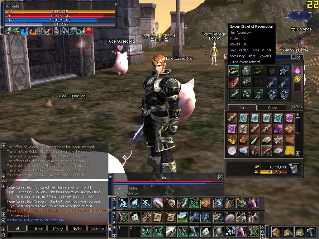 eloim #65094 Tegnap amíg Sieghardt állt, átmentem Franzra és ott találtam ilyen malacokat. Qrva sokan vannak, folyamatosan respawnolnak és nem kell keresgélni őket mint a gólemeket mert a városok mellett vannak :) Tegnapi termés: 1 Brez, 1 EWC, 1 EWA (kb 1 óra alatt) -
