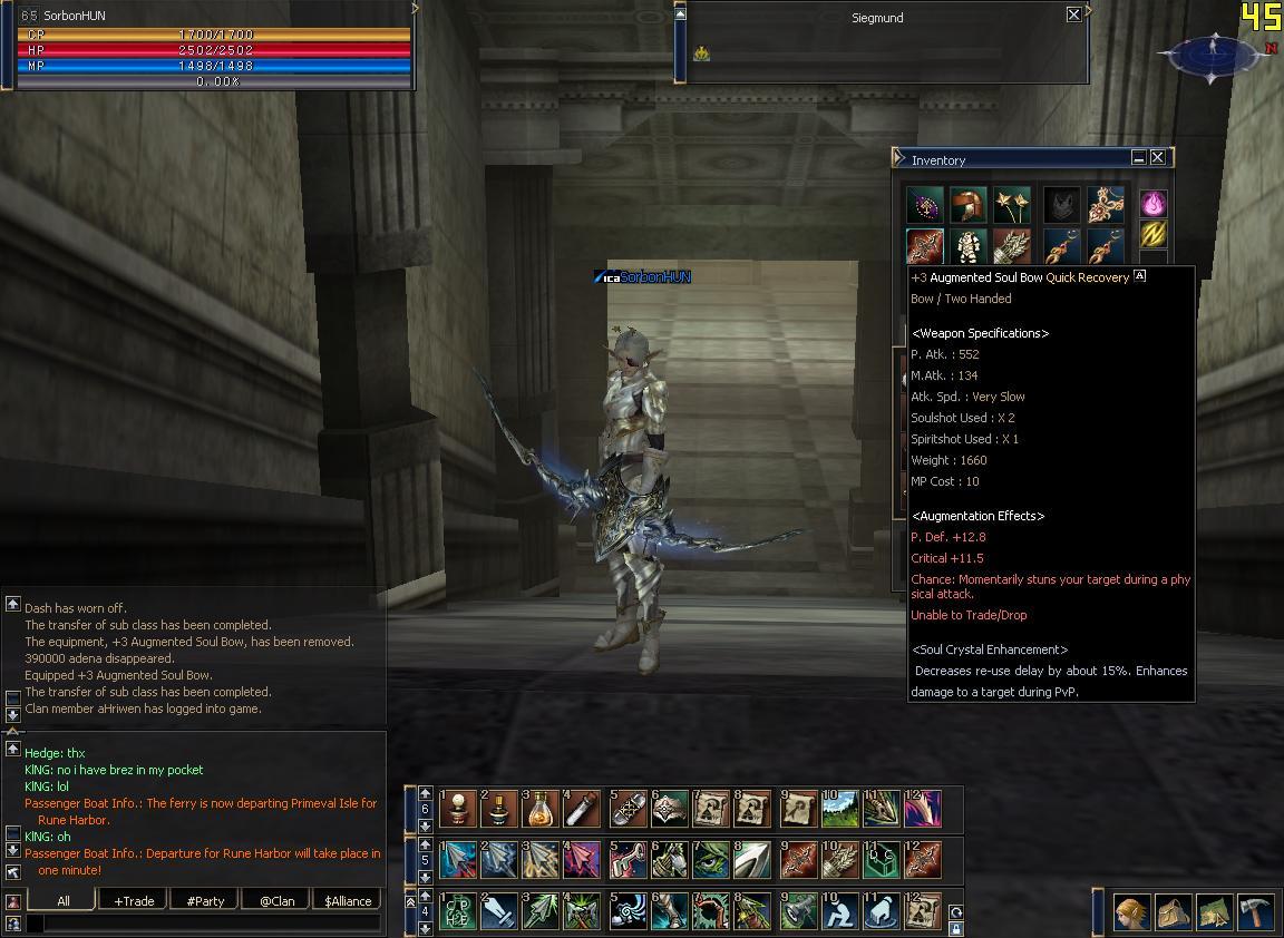 Én is a vizsgák miatt hagytam ki 1 hónapot :D(amúgy nálam van 1 clan armor sett, meg asszem egy +8as Elven Long Sword) -