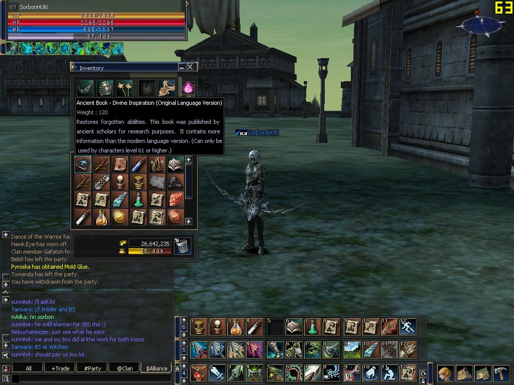 soul bow, fél mj light set, doom light set, magic focus-os buffer bot (soes) hja, és sok mati! 3soul bow craftra gyujtottem alapanyagot de feladtam a shaftok es az 1x rate miatt: 1470 steel, 12k varnish...