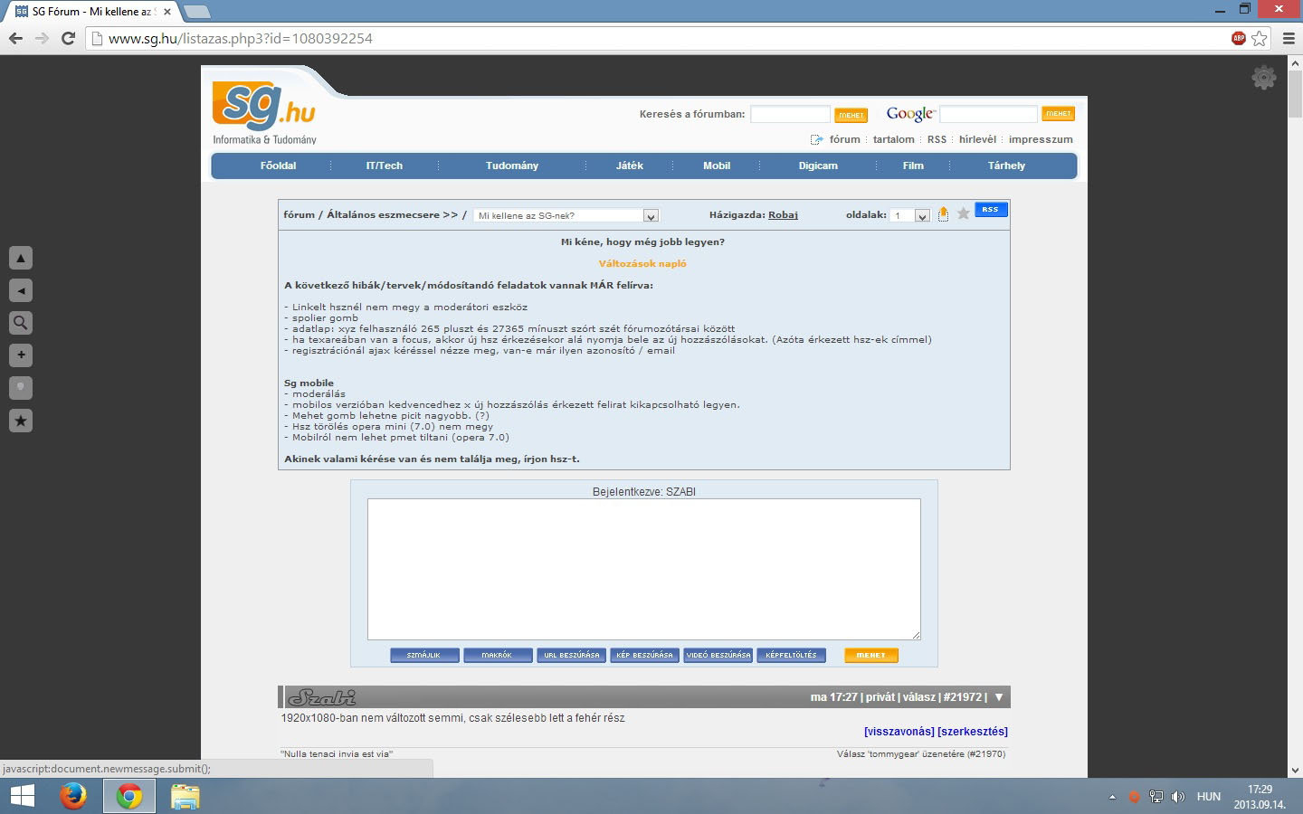- Chrome alatt reload() nem küldi el a post adatokat, így 15 mp-en belüli hsz küldésnél üres postot adott tovább annak lejárta után