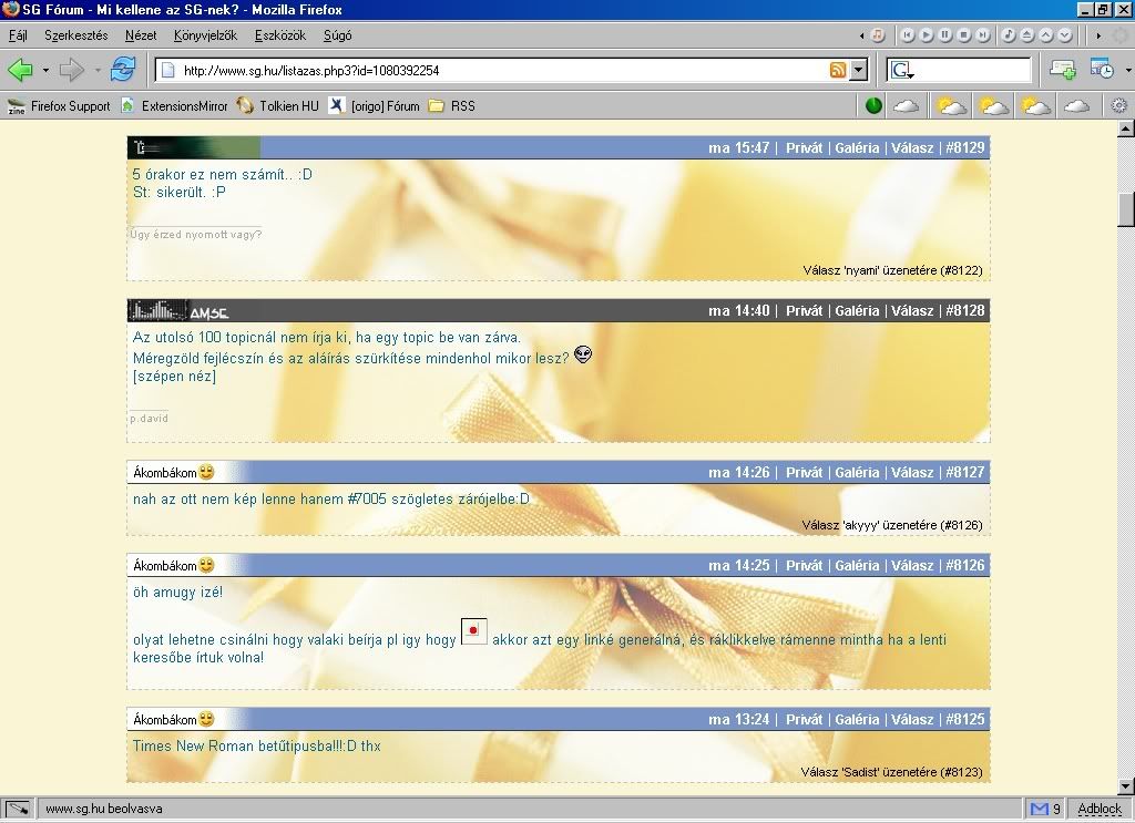 Húúúúúúúúúú. Ezt hogy csinálta a Pyx. Nincs valahol valami sg faq szerûség, ami mindent leír, hogy hogyan konfigoljuk át így a fórumot. Bár nem tudom, hogy házigazdának van-e joga ennyire átszerkezteni a fórumot.