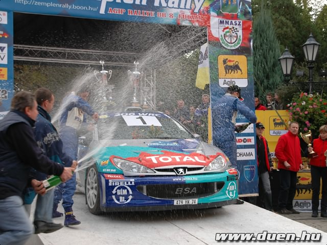 A siófoki születésű versenyző 1995, 1996, 1997, 2000, 2001 és 2002 után hetedszer nyerte meg a bajnoki címet a magyar ralibajnokságban. Navigátora, Bahor Bea először ünnepelhet bajnokként.5. ZEMPLÉN-RALI, az ob 8., utolsó futama, nem hivatalos végeredmény, az élcsoport: