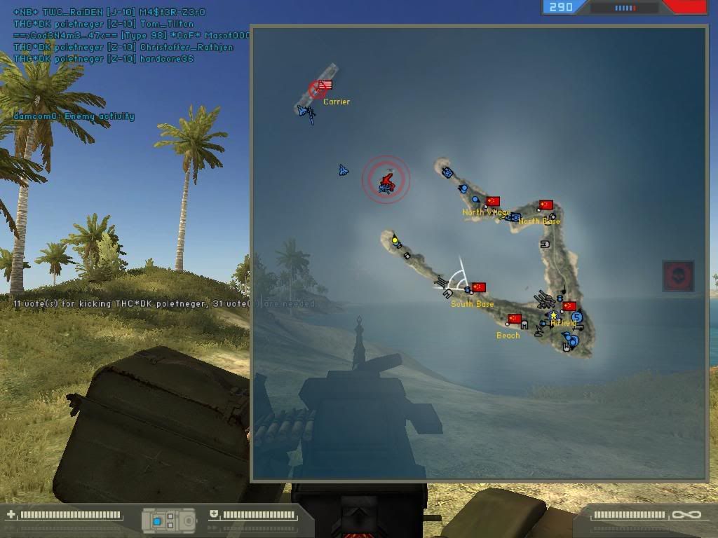 Ugyanakkor meg sokszor nagyon szar pálya: Az amcsiknak semmi esélyük sincs, amíg el nem foglalják a repteret, onnantól meg ugyanez igaz a kínaiakra. Sokszor meg a légierő rontja el játékot: A J-10 nevetségesen erős(nem tudom, miért nem csinálnak már vele valamit), a heli meg néha túlzásba viszi a kaszálást(mint pl. ma is: szarrá kempelték az anyahajót(kép1, kép2, kép3), így ellenséget gyakorlatilag nem is láttunk a szigeten.)