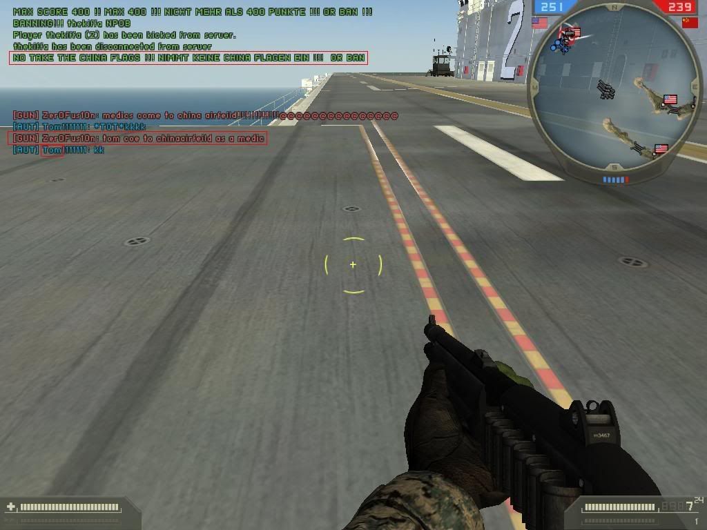 Sajnos hősünket nem láttam akcióban, mert pusztán két percet tölthettem a szerveren, ezalatt kb. a következőt csináltam: beszálltam egy srác mellé a helibe, akivel nekimentünk az első fának. Aztán egyedül repültem (volna) a helivel... Ez idő alatt nem lőttem ki egyetlen golyót sem, nem szóltam senkihez semmit, hozzám sem szólt senki semmit. Kb. félúton járhattam a kínai reptér felé, amikor kirúgtak egy "You are a noob guy" felirat kíséretében. De nem ám holmi szaros kis kickel pirítottak. A lófaszt! Egyből BAN! A semmiért!