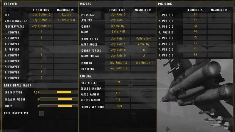 Azért, hogy ne érjen váratlanul, ez a beállítás per pillanat a repülőkre vonatkozik, a JOYSTICK beállításra (nem gamepad), a gyalogos mozgást Crem is bill+egérrel végzi.