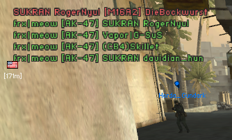 ez most mi? skill vagy csít? NAGYON messziről-AKval-állva-egy lövéssel-egy teljesen fullon lévő sniperként csináltak ki hétvégén magyar szerveren, magyar klános játékos által, miközben én M24-gyel előtte 2x találtam el a delikvenst. emellett volt ideje egy ilyen szépen kivitelezett lövésre. nevet természetesen nem mondok, mert ez csak amolyan nemtudommi