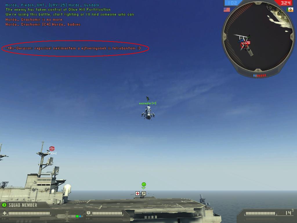 na nyomtam egy francia szerveren repültem egész addig amig az ellen anyahajoja közelében ráengedtem 2 raketát egy repcsire leszedtem azonnal kivágott az admin BC-ért:((