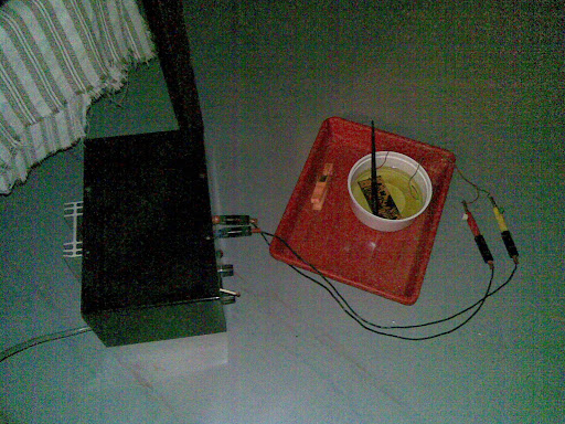 , ez mar igen, marhara beindult az egesz. Rendessen felizgattam 12V-al a savat anyira hogy meg a trafom is elfustolt tole. Ekkorat meg nemizgult a trafóm 1 deci sav hatasara
