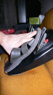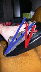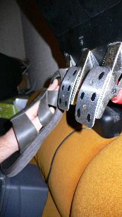 Gyorsan átsétáltam a G25 pedálján megnézni egy tesztet. Azt néztem, hogy a sarok az tuti egy ponton van, azt nem változtatja az ember. Tehát fix sugaron fordul az ember talpa. Teszi ez a pedál is. Az a kérdés mennyire térnek el. Mert ugye ha csúszik a talp a pedálon fel-le az kényelmetlen lehet és pontatlanságra adhat okot. Hát meglepett az eredmény, olyan pózban néztem a papucsommal, ahogy a cockpitban is volt/lenne.