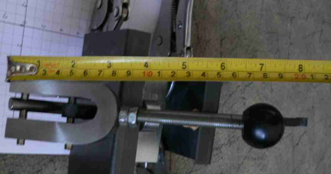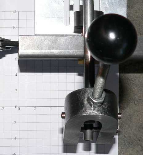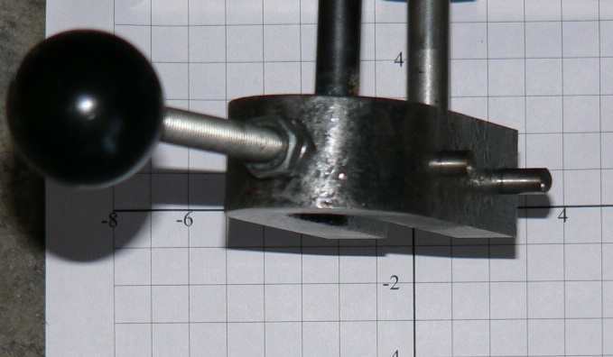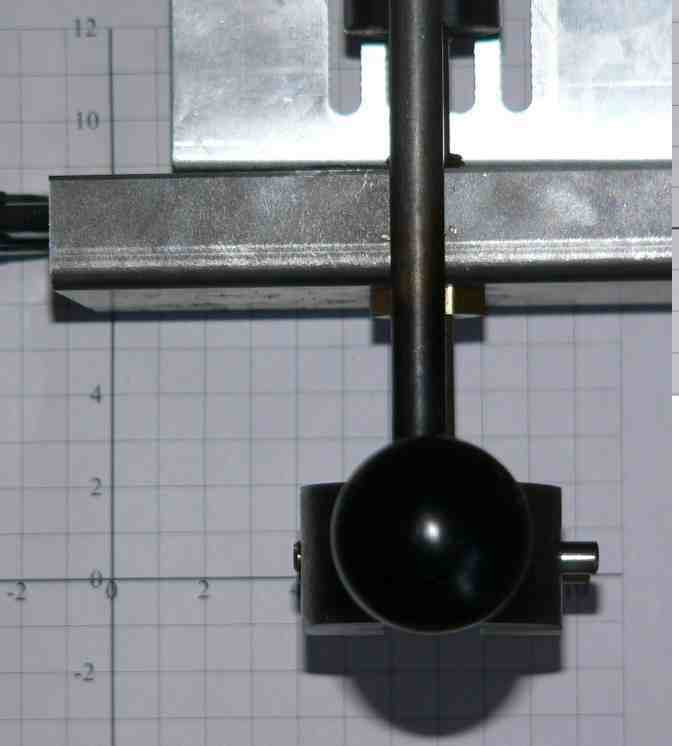 A terelgető lemez 6-os stancolással 5-ös közökkel készült 40mm hossz és 38mm kereszt irányú befogadó mérettel (H alak). A vasdarab, ami a gömbfej helyén van átmeneti megoldás, filcel jelöltem be a könnyebb mérés miatt a hátsó perselytartó lemez felett a tengelyt. Ezzel csak a kar mozgását néztem, van ilyen próbalemezből 2,5cm magasságú, 30 és 35mm-es is. A képen a 25 mm-es volt "beépítve".