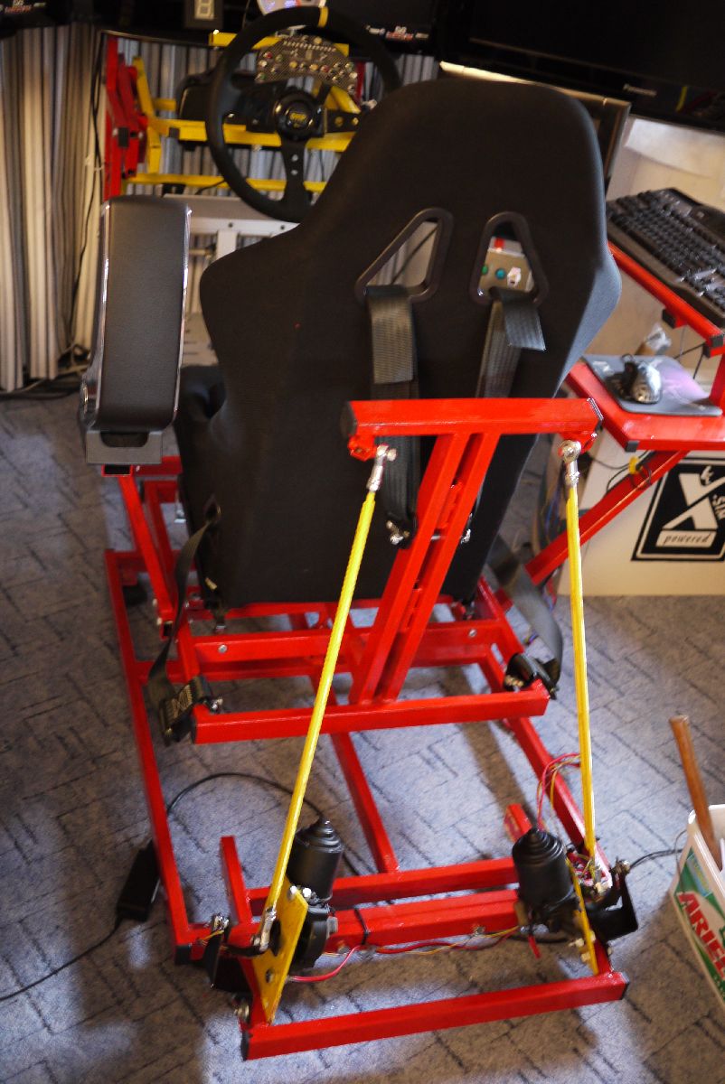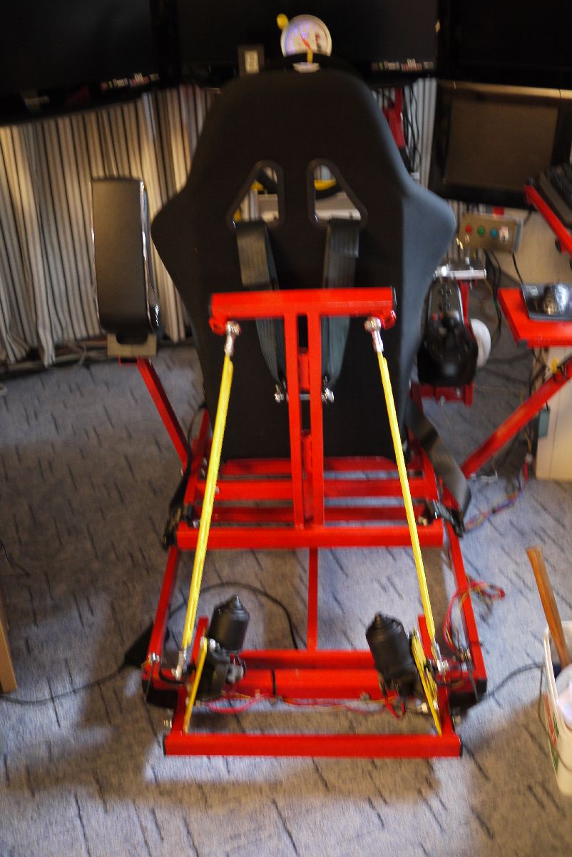 Persze így az lett a vége, hogy már a megdöntött motorok se tudták a jobb elülső döntött állapotából visszahúzni a széket, kevés volt hozzá az ereje (asszony alatt nem XD , csak alattam ). Visszacsinálás helyett persze előbb próbálkoztam, hogy így akkor sokat mozog a szimulátor, mert sokkal közelebbről emel rajta 4cm-ert, ezt levettem háromra, a motor forgattyúinál.