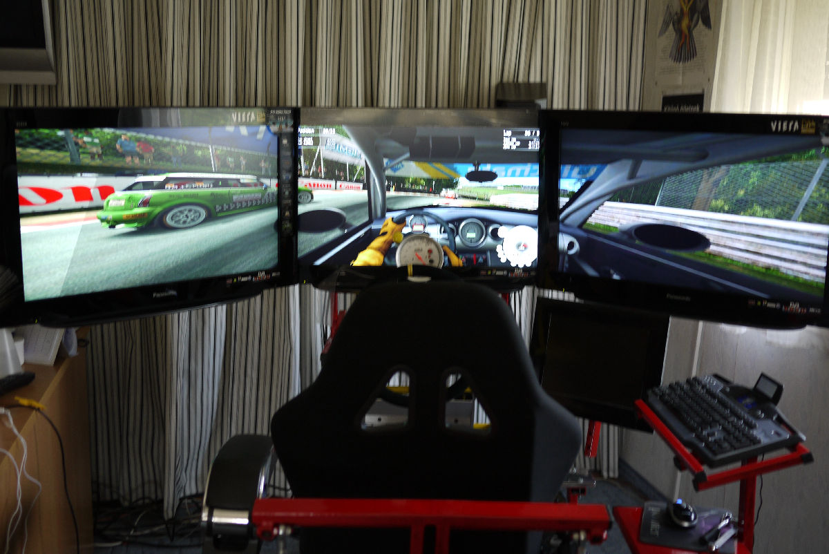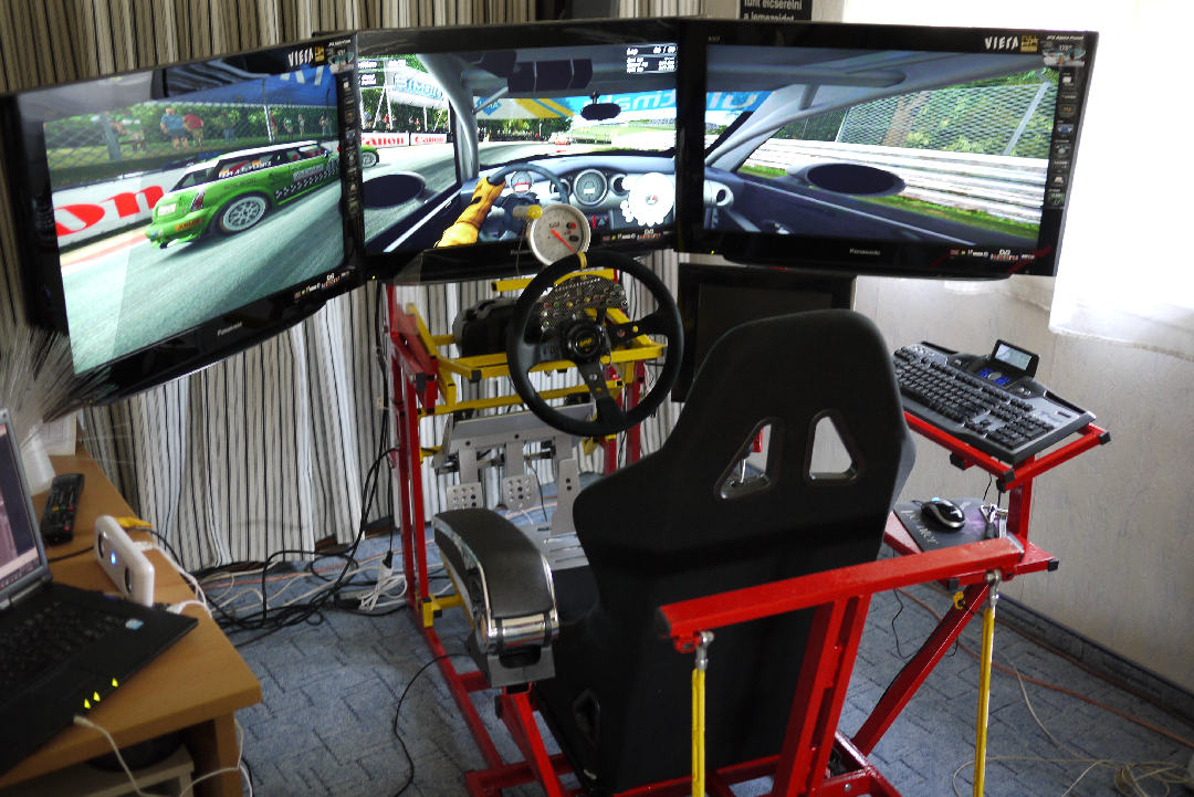 Játszadoztam kicsit :) Kicsit jobbra kellene eltolni a nézetet, hogy a jobb ablakba is lássak valamit, de akkor a kormány nem az én kormányommal esik egy vonalba. Na, majd állítgatok még :D -