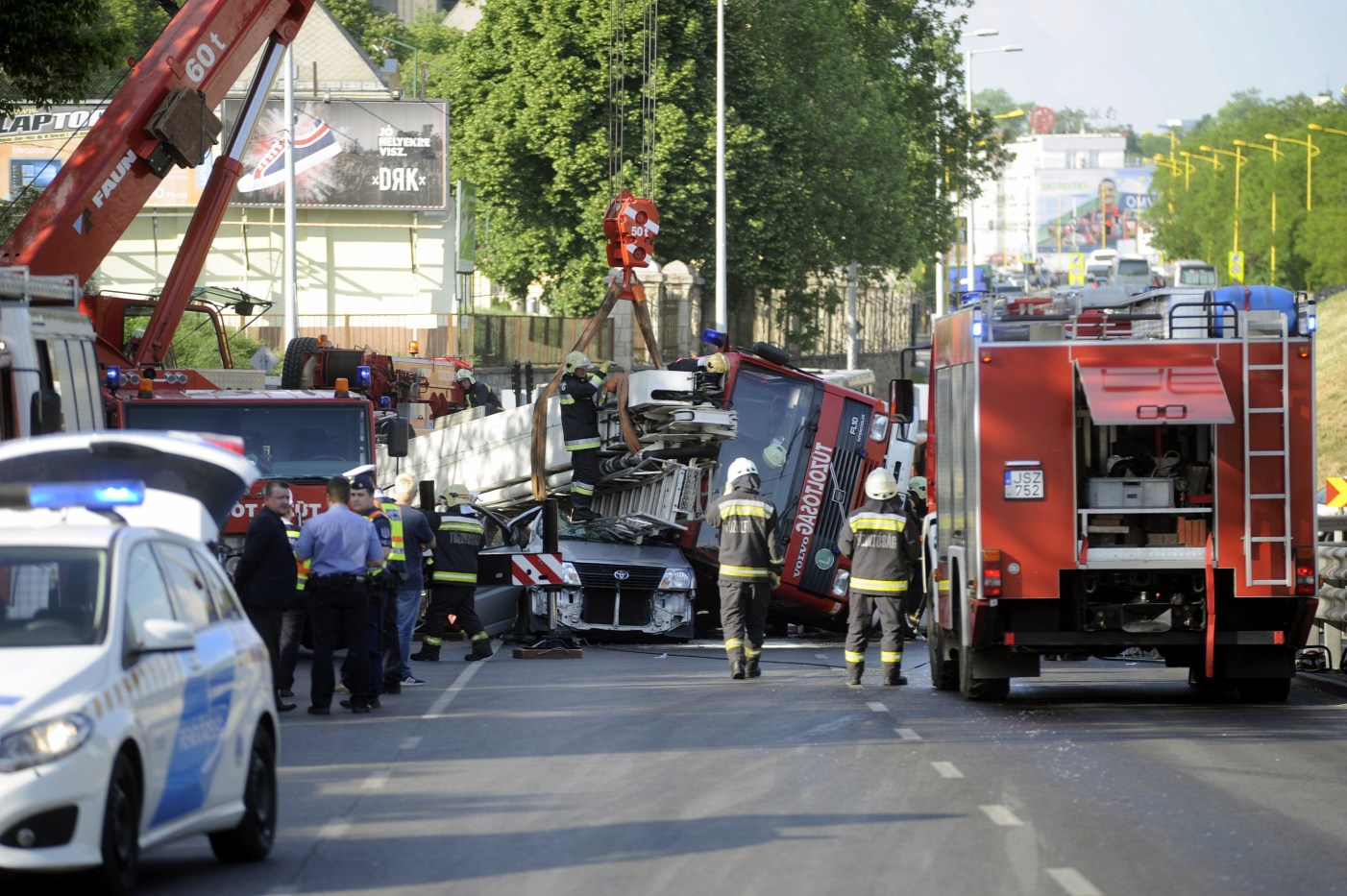 Autóra borult egy tűzoltóautó Budapesten, egy halott