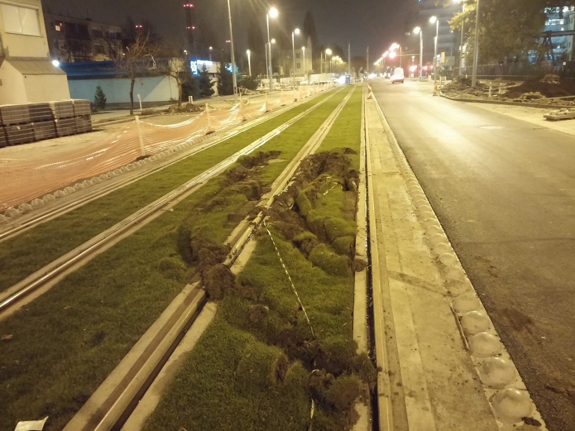 "A még át sem adott füvesített villamospályára a Hengermalom úton hajtott fel valaki. "