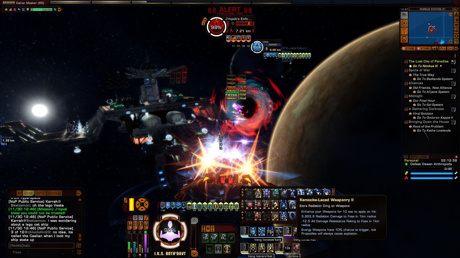 Kellett volna híl,nem jött össze,az egyik csapattárs valami olyan buffot tolt amitől akár álcában akár álca nélkül de mindig volt secondary hull meg pajzs. Esélytelen volt a hílelni magam.