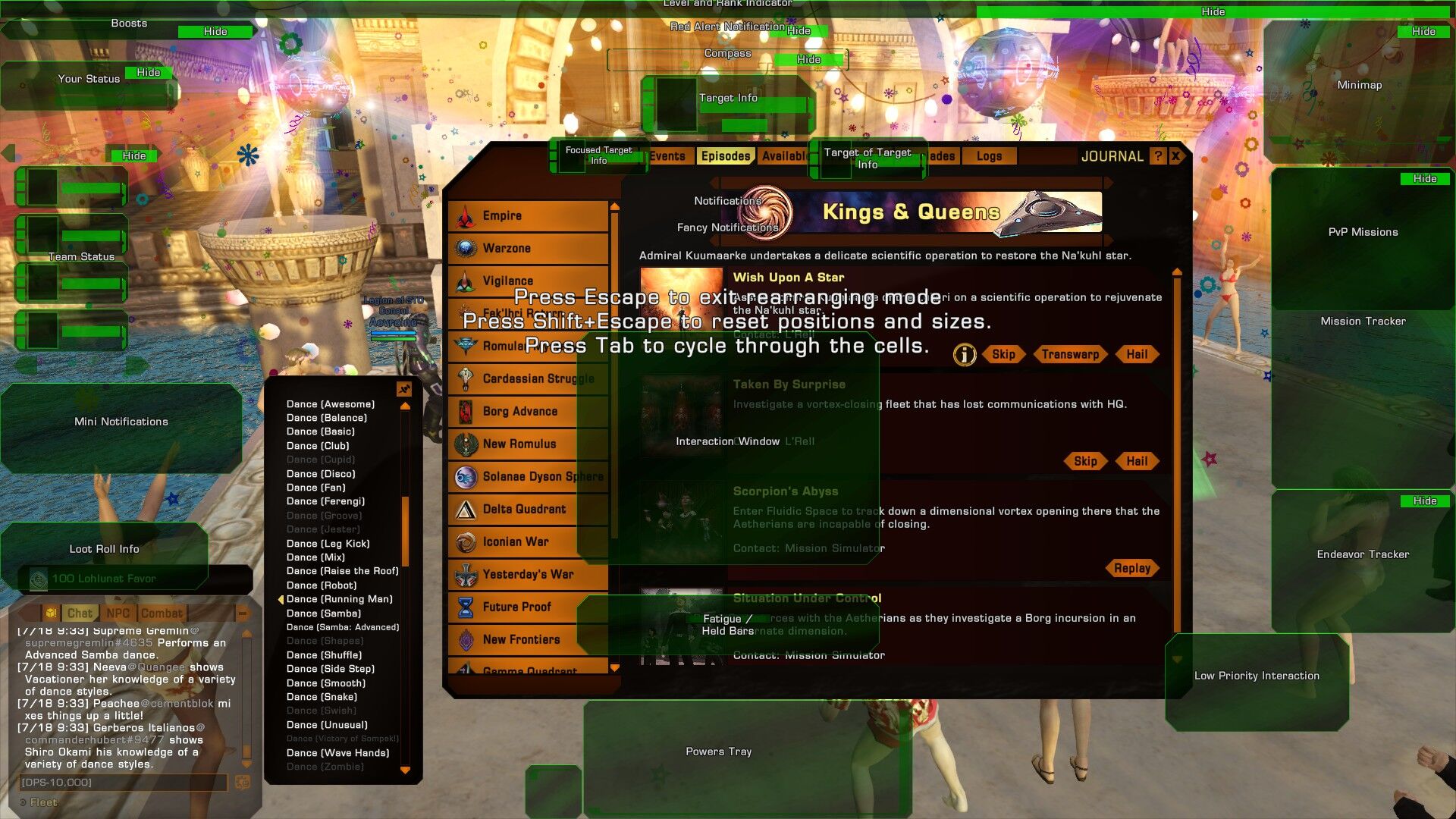 Elmentem a táncolós dologra,kiraktam a tánc emote-kat oldalra,közben megakartam nézni milyen küldetéseket skipeltem,mert meg kéne őket csinálni.